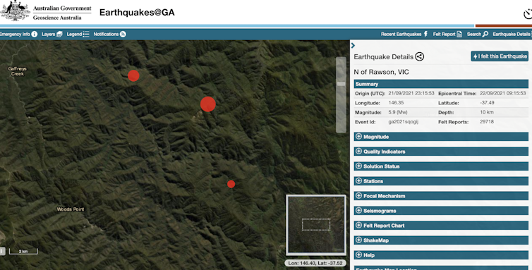 This morning’s earthquake was the largest onshore quake ever recorded in Victoria. Other recent earthquakes include two magnitude 5 quakes: one in 1996 near Mt Baw Baw, and one in 2012 near Moe.